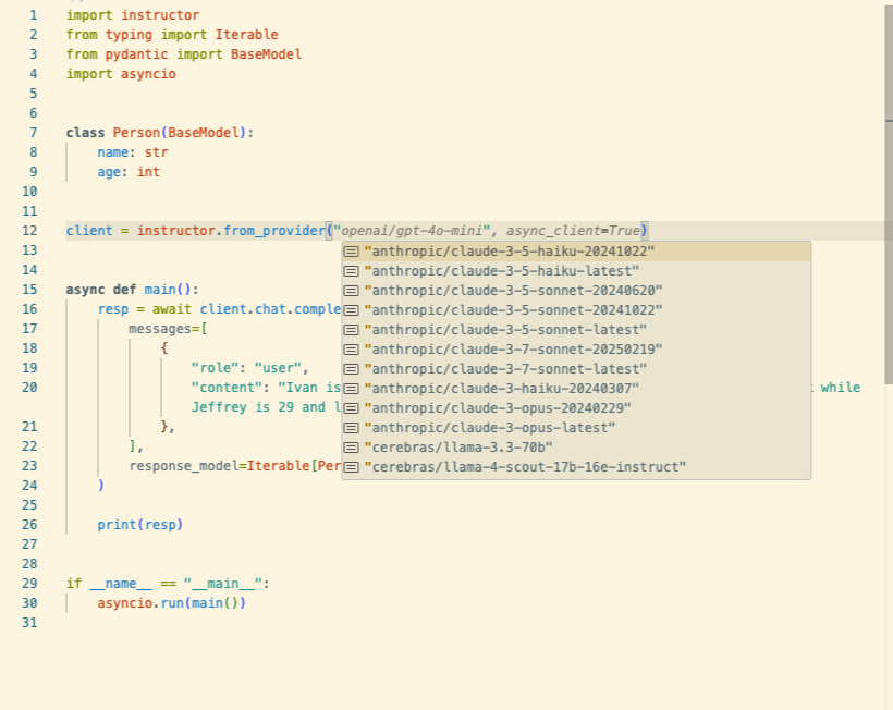 async_client = instructor.from_provider("openai/gpt-4.1-mini", async_client=True)